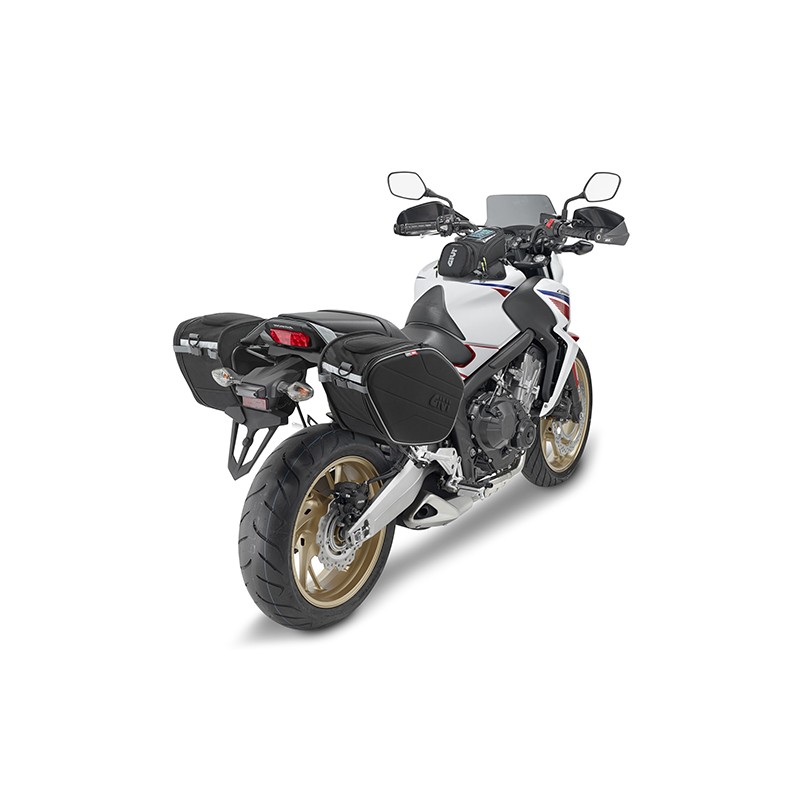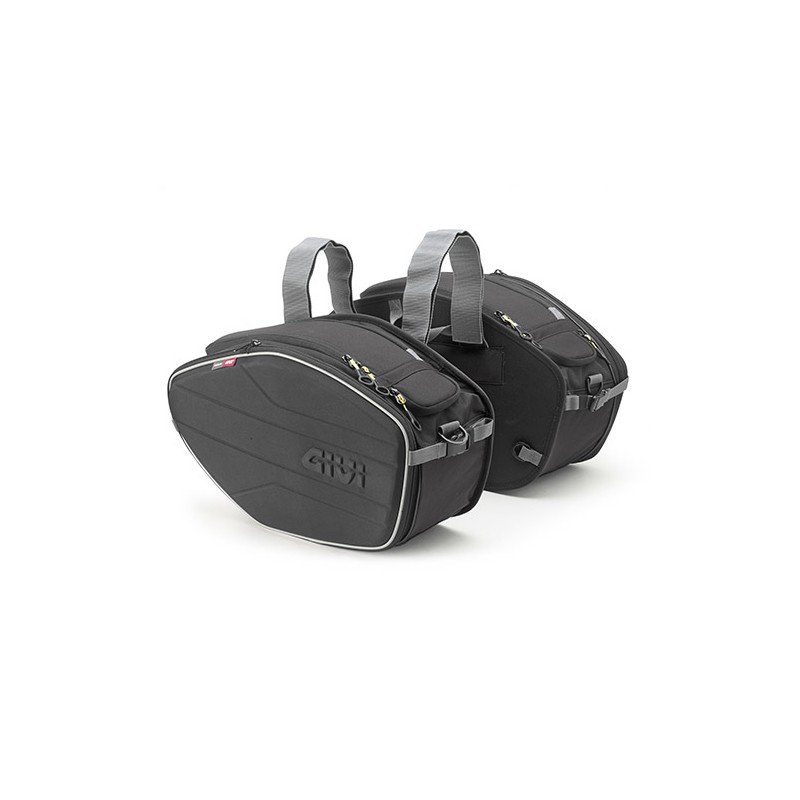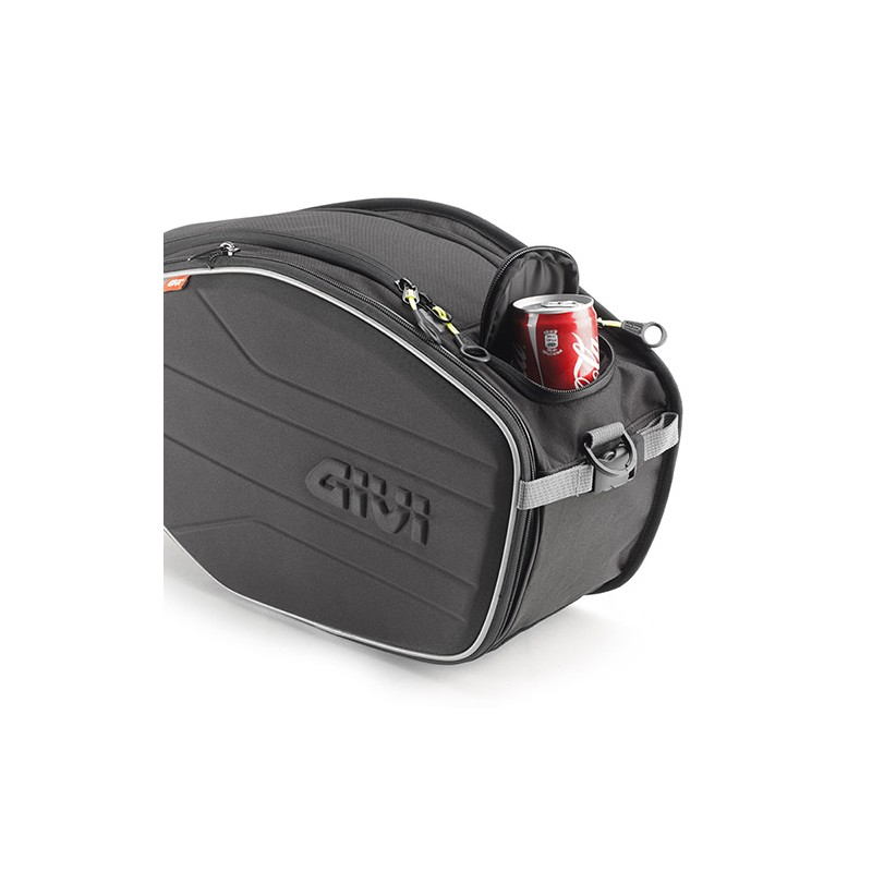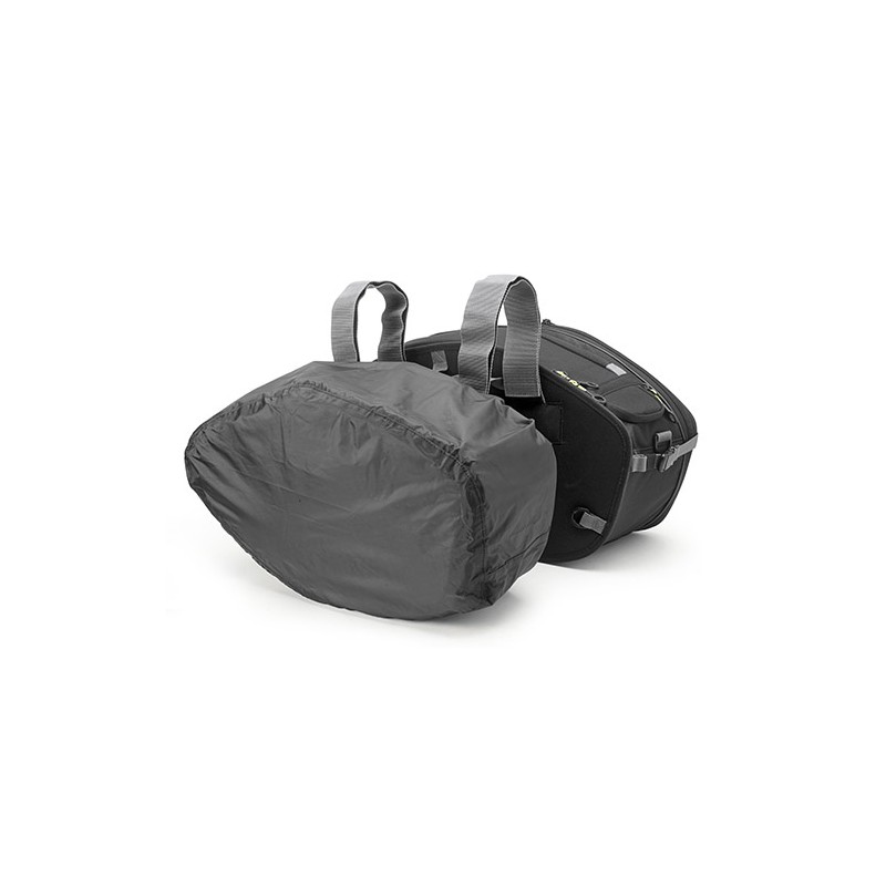 Con: copertina antipioggia, tracolla, due elastici tubolari con ganci e rinforzi in plastica rigida.